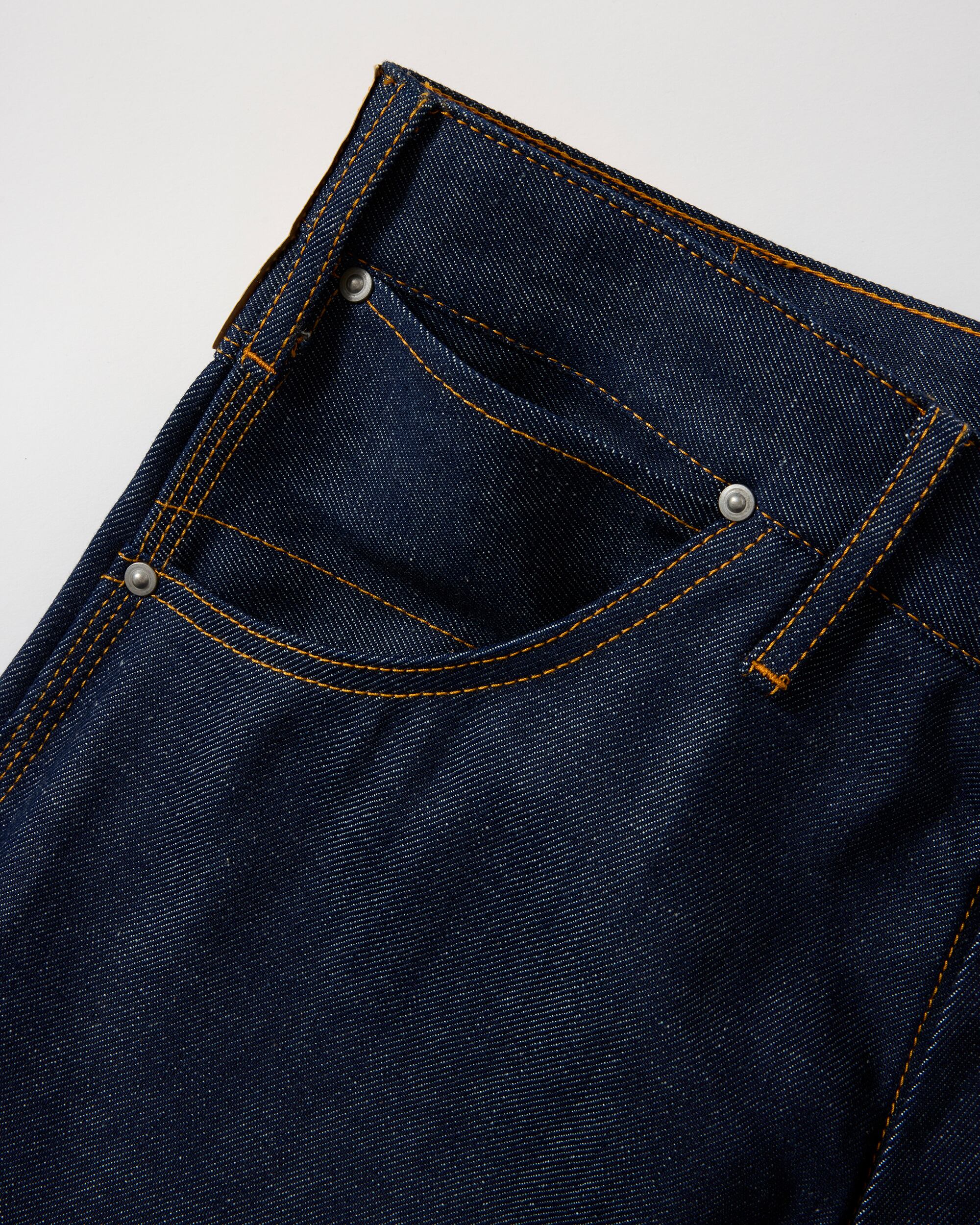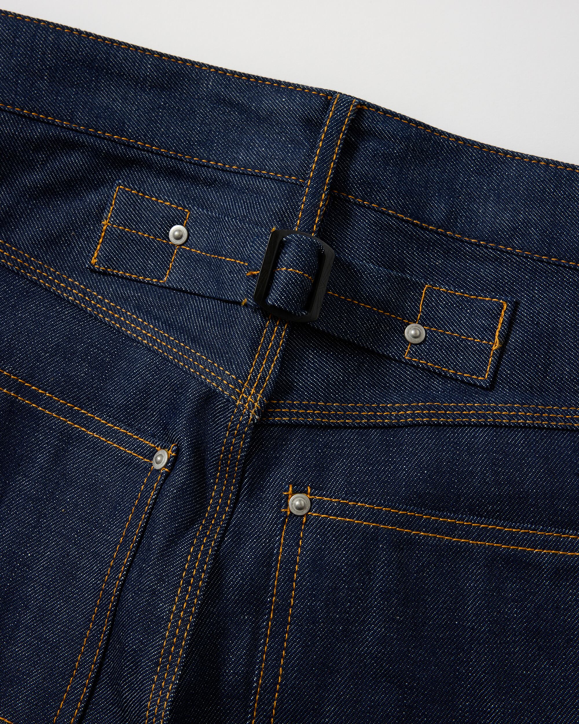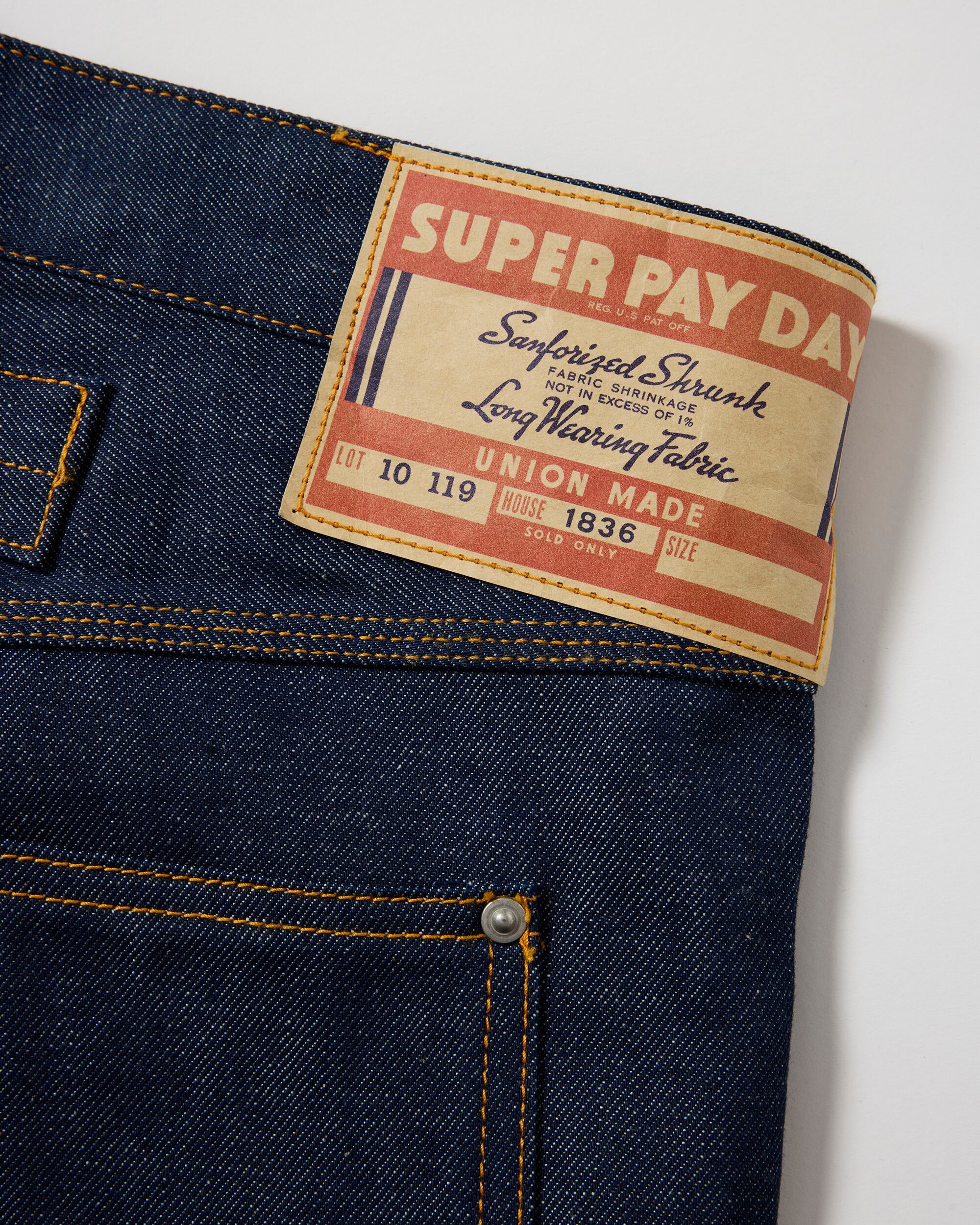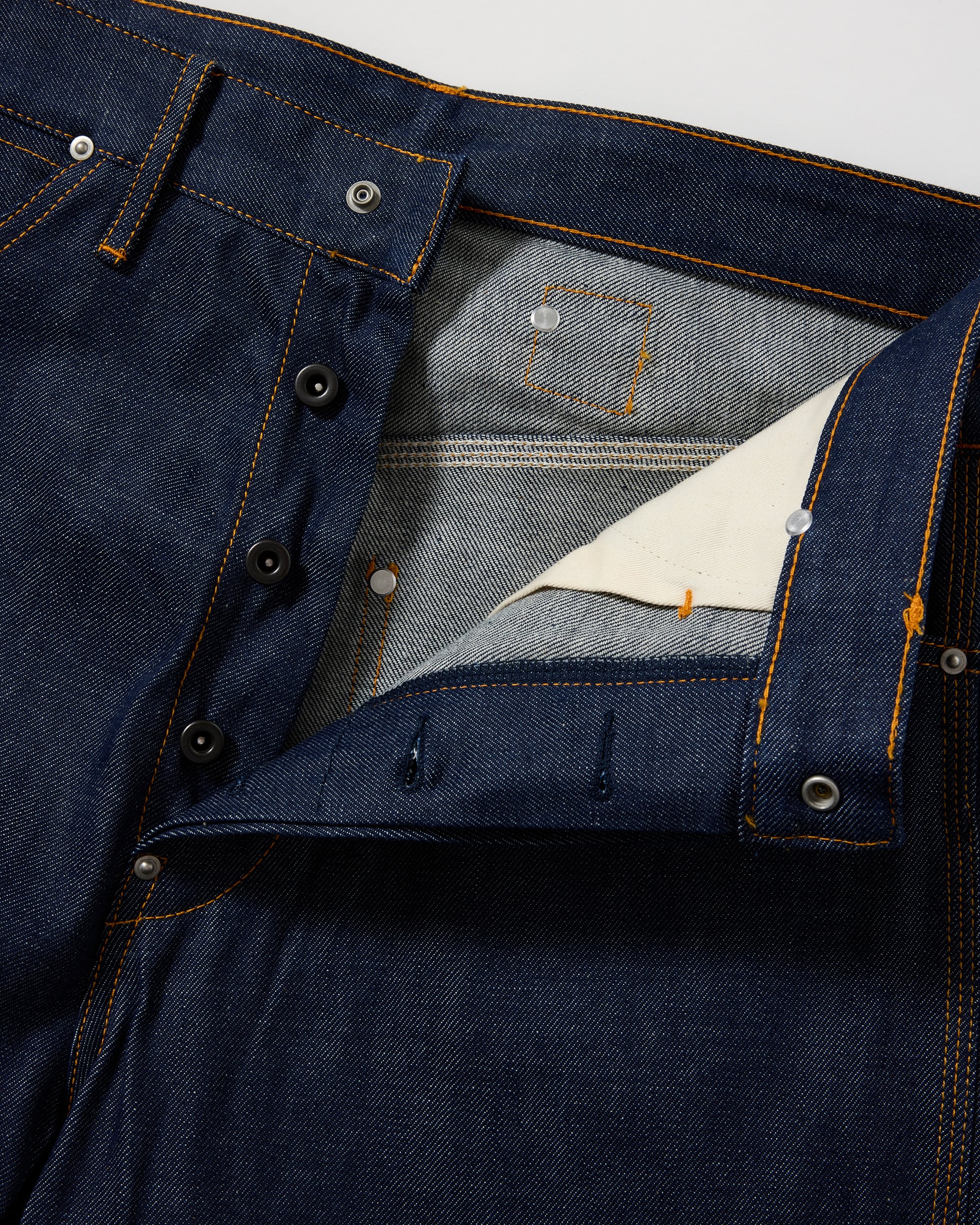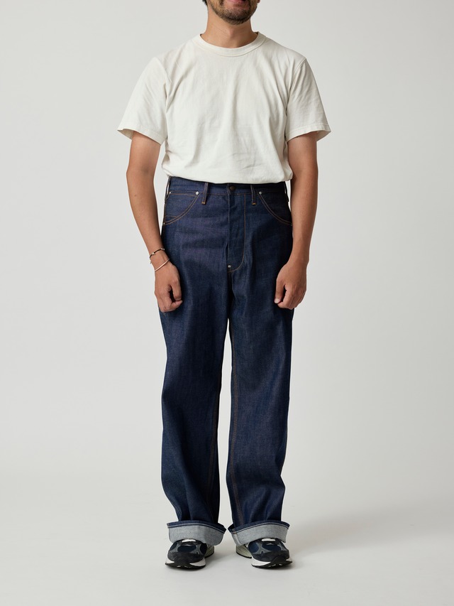 10ozムラ糸デニムを採用、飾りステッチは当時と同じ綿糸を使用し、ブランドネームやタック釦、紙フラッシャーまでを完全復刻しています。日本人の体形にあうようにパターンは若干調整し、履きやすい1着に仕上げました。