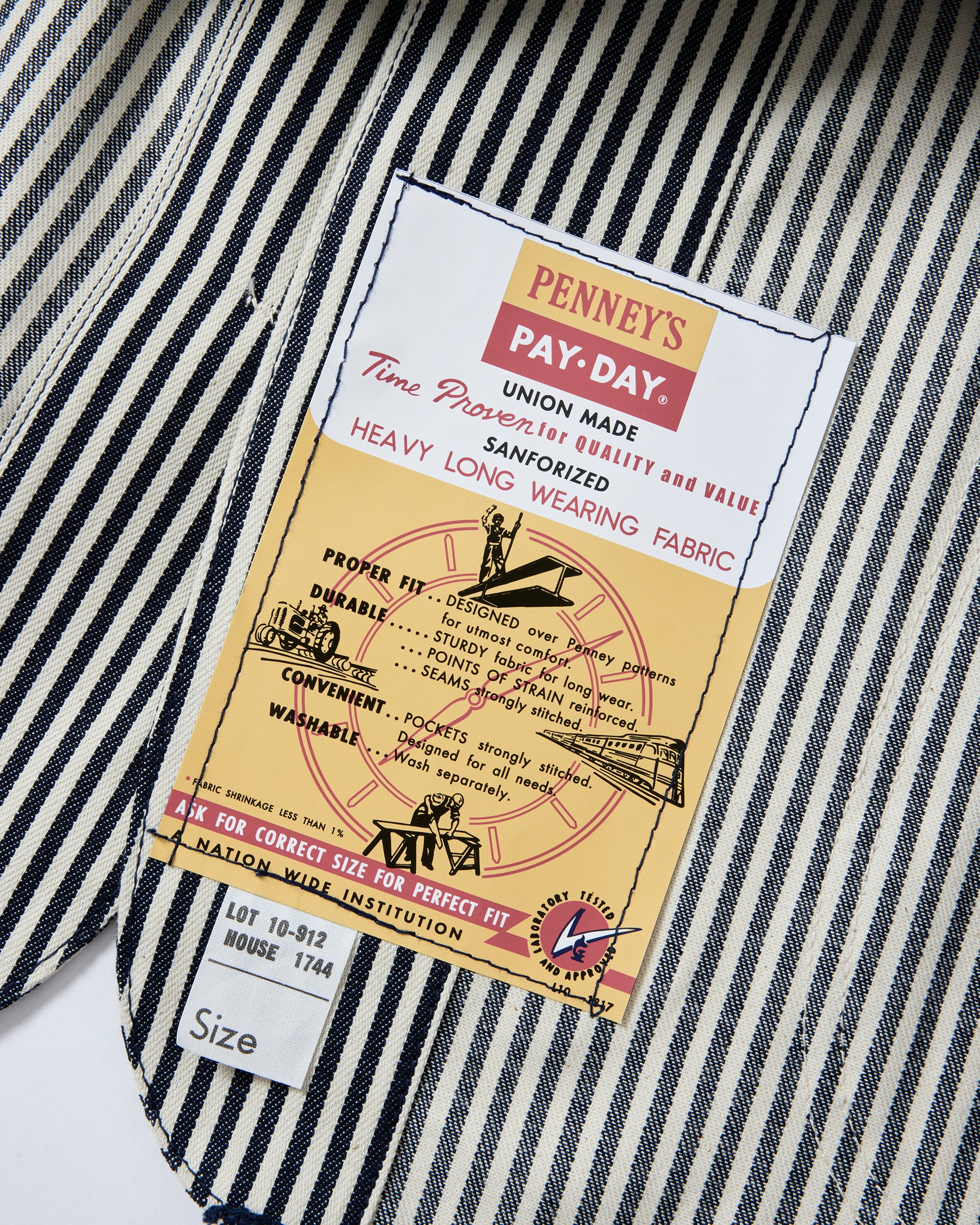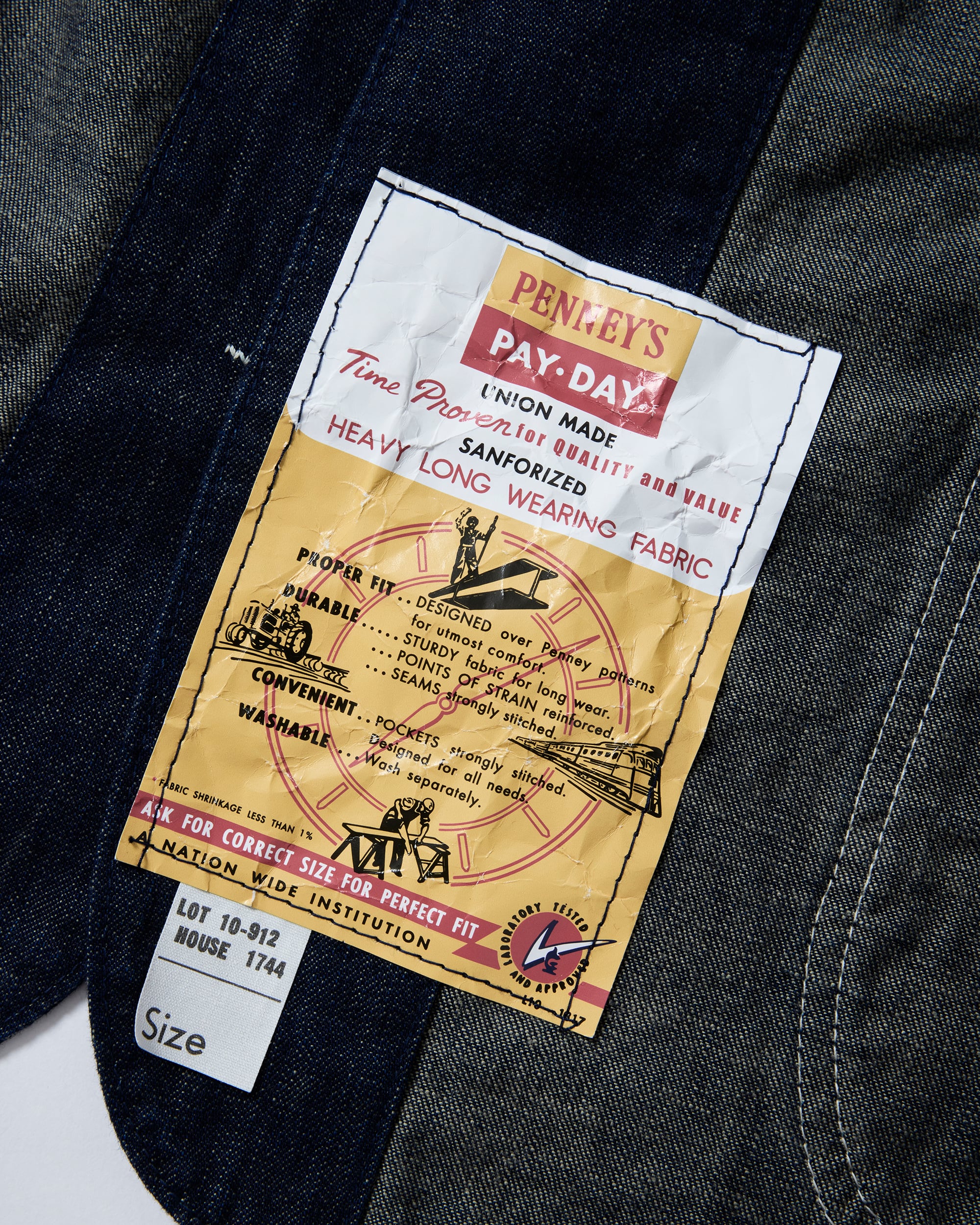 飾りステッチは当時と同じ綿糸を使用し、PAYDAYの顔でもある「PENNEY'S PAYDAY」ブランドネームや紙フラッシャー、サイズネームも完全復刻しています。